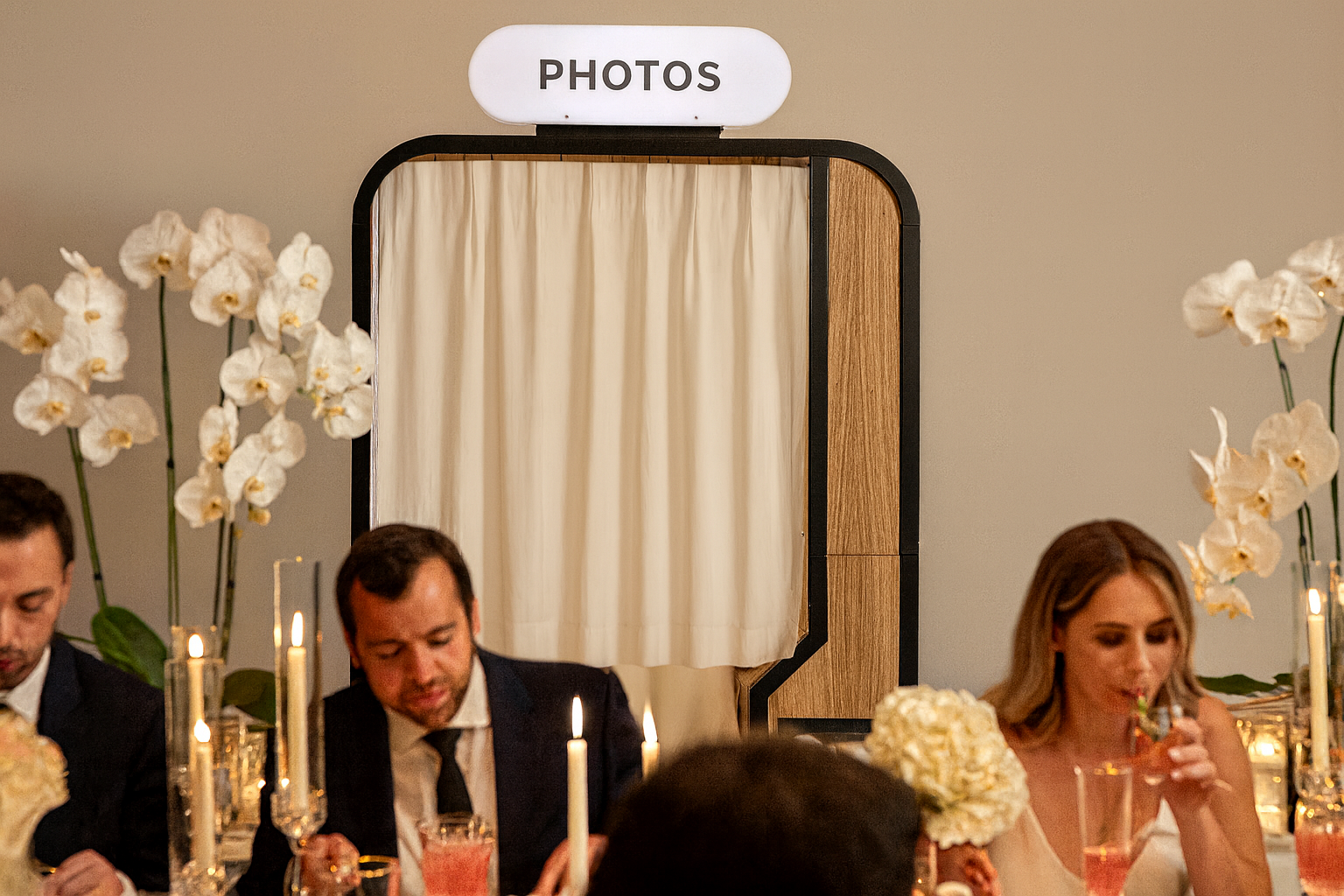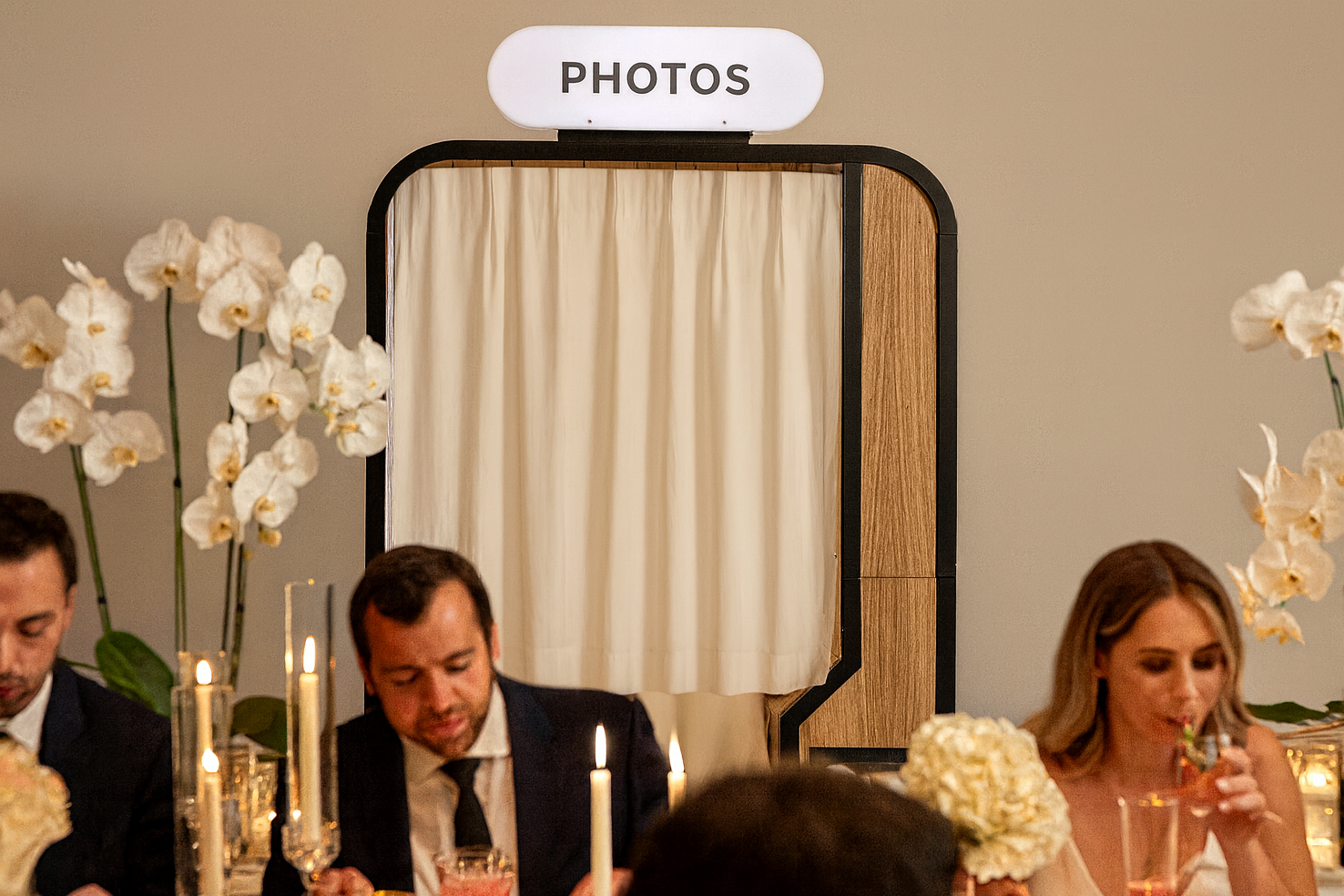 An enclosed photo booth brings back a familiar feeling — stepping inside, closing the door, and sharing a moment away from the room. It’s a classic experience guests instantly understand, thoughtfully updated with professional lighting, guidance, and imagery that feels elevated.